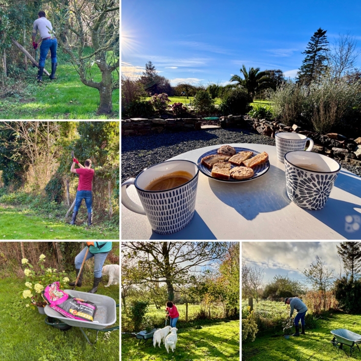 Dankbar und motiviert werden Haus sowie Garten anschließend winterfest gemacht … der Rückschnitt von Bäumen und Büschen erfolgt bei schönstem Herbstwetter, wir befestigen Zäune und widmen uns Neuanpflanzungen – danach ist der Nachmittagskaffee bei milden Temperaturen in der Novembersonne ein besonderer Genuss