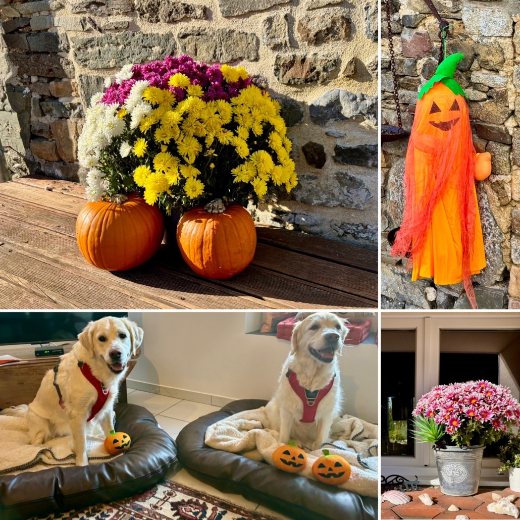 Als wir vor drei Wochen in der Clergerie ankamen, freuen sich sowohl Hunde als auch Menschen über die Blumen- und Halloween-Grüße sowie die Präsente unserer letzten lieben Gäste