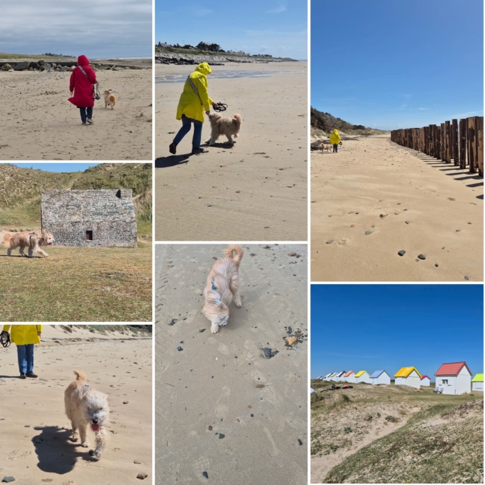 Im April nannte Titou den Platz vor der Clergerie-Palme sein Eigen. Doch seine sehr aktiven Menschen zeigten ihm noch sehr viel mehr rund um sein Urlaubsdomizil: die Strände von Bretteville und St Germain, den Wald von Lessay, die Heide von Millières und den Lac des Bruyeres, die Dünen von Gouville sowie den Mont Saint Michel. Titou spazierte sogar über die Stadtmauer und entlang des alten Hafens im bretonischen Saint Malo